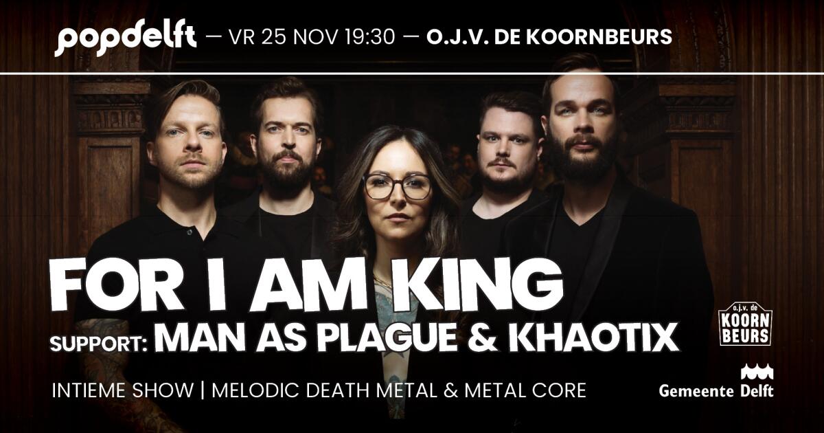De I-factor van For I Am King zit hem in de perfecte integratie van hun muzikale kwaliteiten: melodieus en modern, complex en furieus, en tegelijkertijd toch catchy. Gedreven door de unieke vocalen van frontvrouw en eyecatcher Alma Alizadeh weet deze band de ware essentie van Metal (met een hoofdletter M!) te vangen. Hun persoonlijke en betrokken teksten en fantastische uitstraling en presentatie, weten ze tijdens hun explosieve live-shows elk publiek in beweging te brengen! Dat komen ze nu ook in Delft doen. Waar anders dan in onze eigen metalbroedplaats De Koornbeurs?!